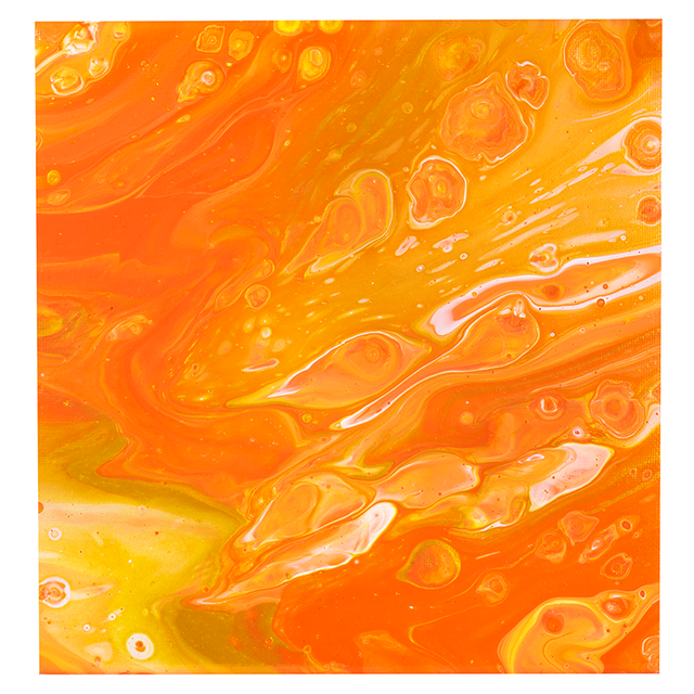 Si no tienes un vaso, también puedes verter la pintura directamente sobre el lienzo y mover el lienzo desde allí para que la pintura se mezcle bien y se mueva sobre el fondo. Este vertido se puede utilizar en diversas superficies; lienzo, papel, madera, plástico, loza, porcelana y metal. Así también puedes decorar una bonita taza o posillo.