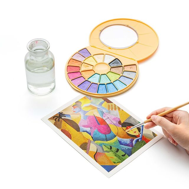 Las acuarelas sólidas HIMI son colores hermosos y de alta calidad. El set incluye 24 tonos brillantes. Los envases vienen en una práctica caja con tapa desplegable. Muy fácil de transportar. Ideal para proyectos de técnica mixta y pintura en acuarela.