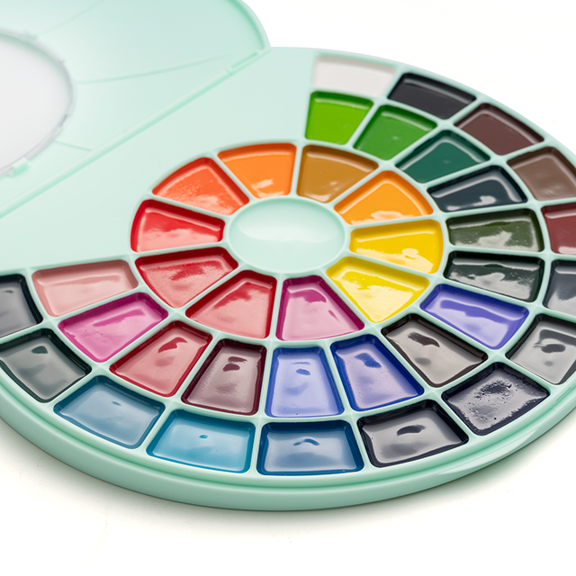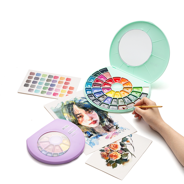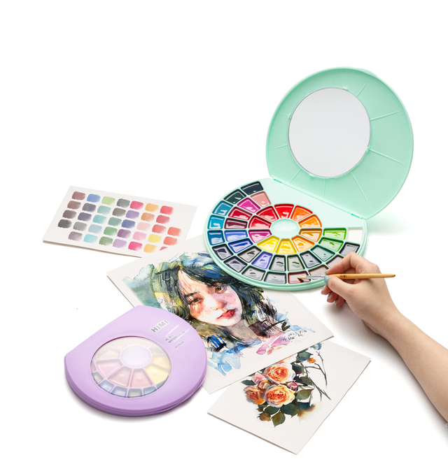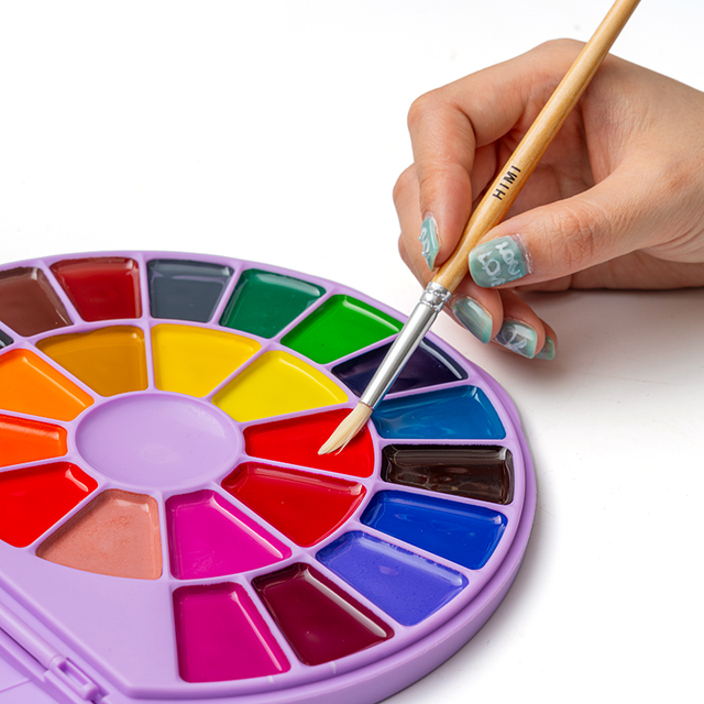 Con el Set de Acuarelas en Pastillas de Himi podrás realizar múltiples creaciones artísticas con una paleta de colores vibrantes y llamativos. Su diseño único semi - circular le da un toque diferente y práctico, además posee una ventanilla transparente para que puedas visualizar el estado de tus acuarelas con el estuche cerrado.
