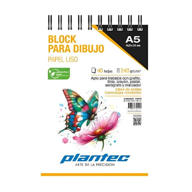 Consultar porBlock Plantec A5 Liso P/Bocetos 40Hj 240grs - Espiral Superior (15675)