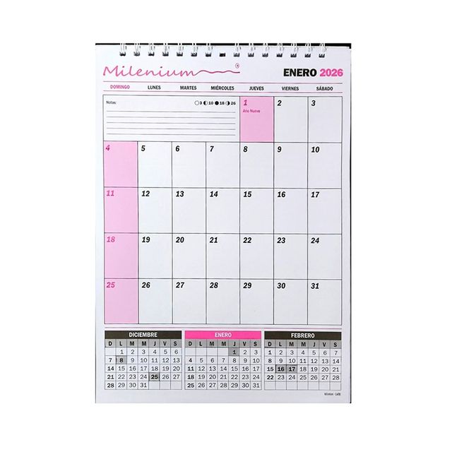 Consultar porCalendario 2026 Milenium Esp. 32,5x23 cm (Oficio Vertical) (CA08)