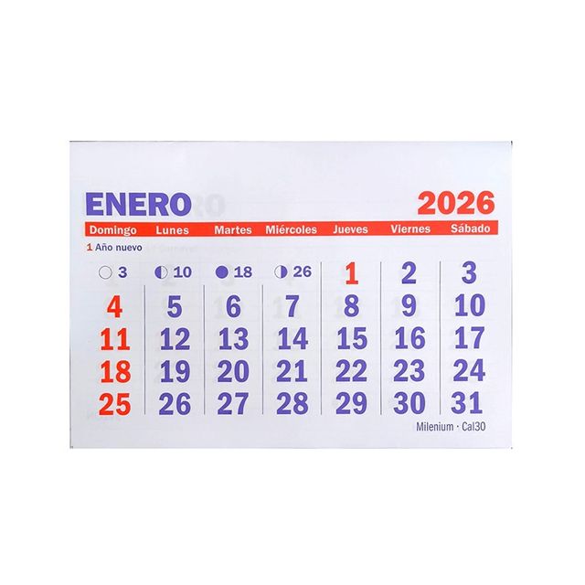 Calendario 2026 (Sin Espiral) 21x30 cm (CA30)