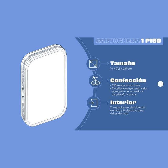 • 12 espacios en elástico de un lado y 8 elásticos para útiles del otro.