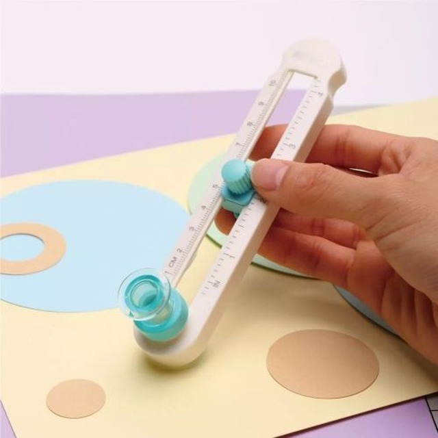 Una vez elegido el diámetro a cortar, gire la perilla a la posición de cerrado para fijar la medida de corte. Posicione la cortadora sobre el material y mientras presiona el centro gire la regla en sentido opuesto a las agujas del reloj