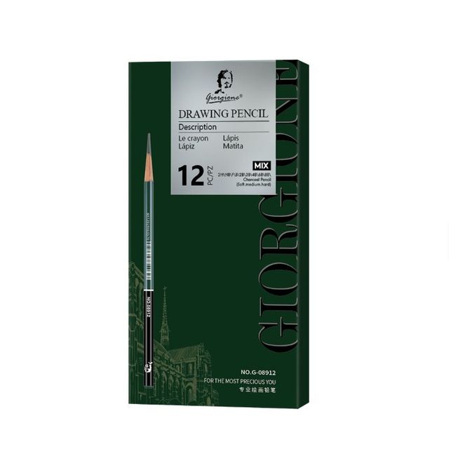 Detalle lápices: 2H - HB - F - B - 2B - 3B - 4B - 6B - 8B - carbonilla (suave - medio - fuerte)