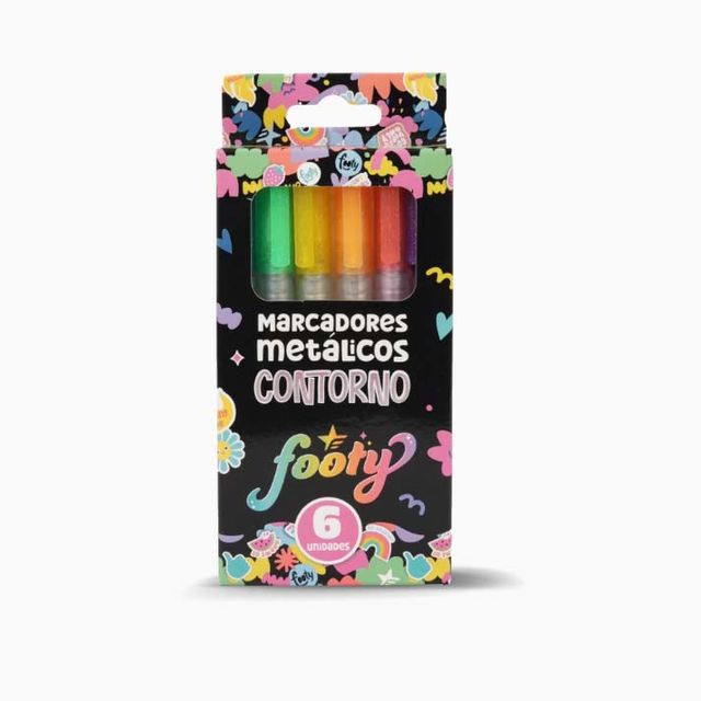 6 marcadores metálicos con tinta plateada y el contornos 6 colores diferentes