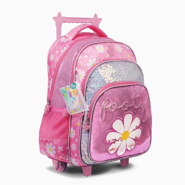 Estampa sublimada, tela con efecto tornasol y lentejuelas con mini de flores en holograma