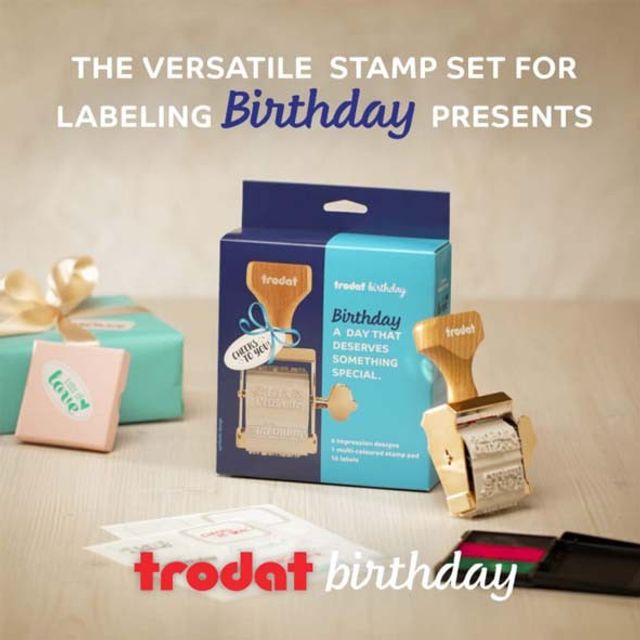 El set de sellos Trodat Birthday es perfecto para personalizar regalos de cumpleaños, tarjetas, papel de regalo y dar un toque especial a cualquier celebración.