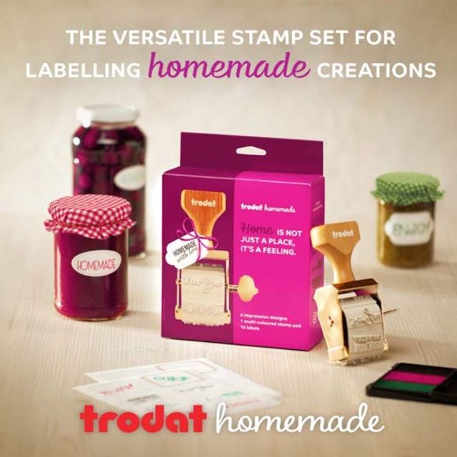 El set de sellos Trodat Homemade es ideal para la temporada de mermeladas y encurtidos, y es perfecto para etiquetar tarros, botellas, etiquetas de regalo y mucho más.
