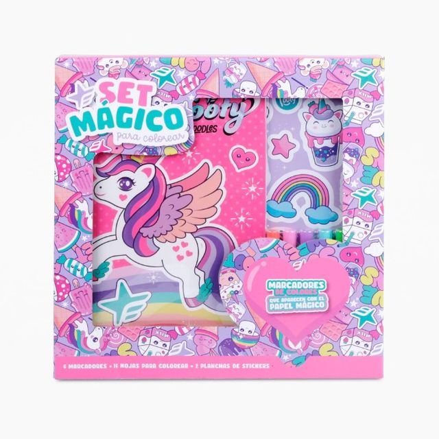 Set Mágico de Unicornio: dibuja con los marcadores y observa cómo aparecen dibujos y colores secretos en cada hoja. Cada trazo es un poquito de magia que convierte tu cuaderno en un mundo lleno de fantasía y diversión